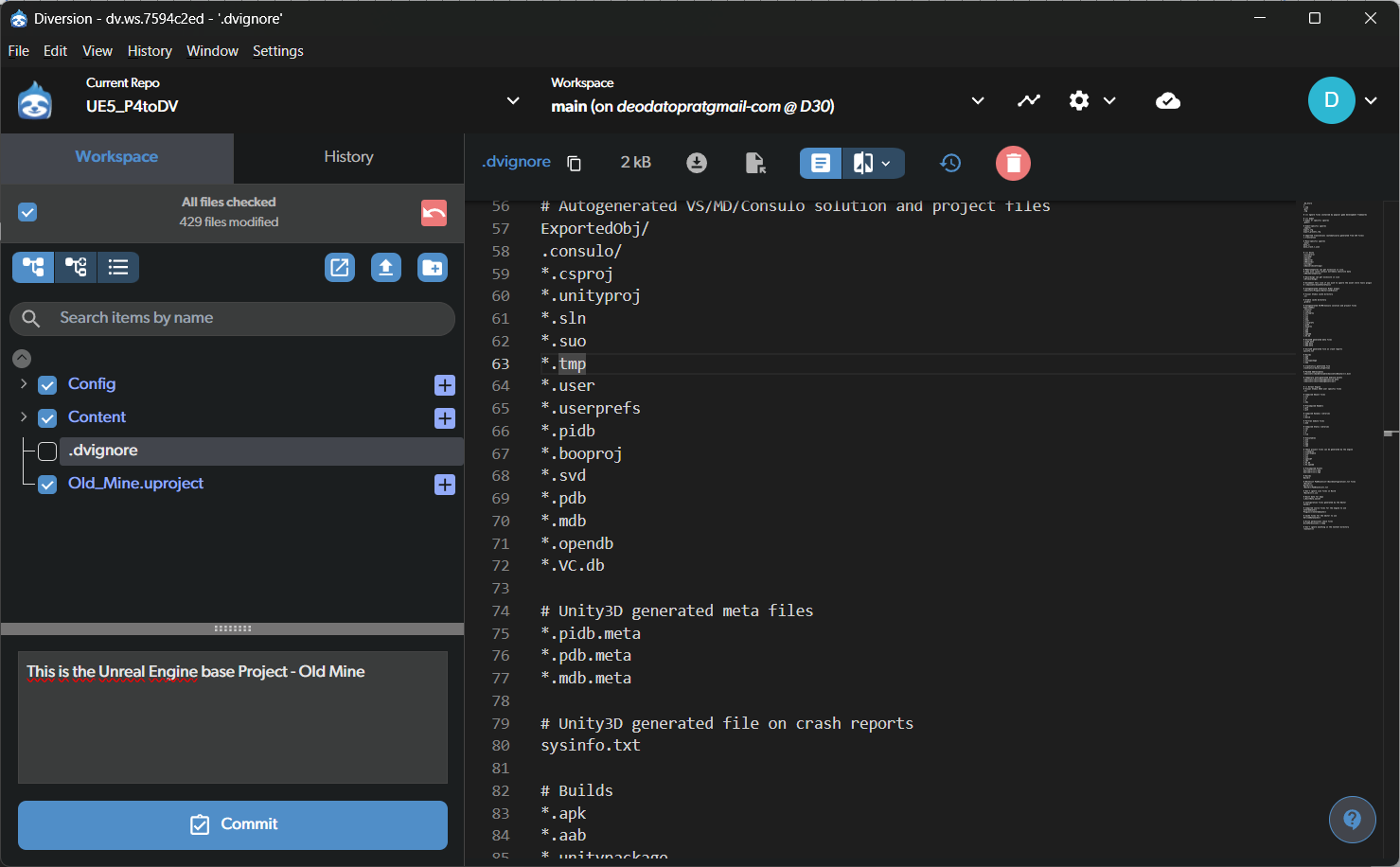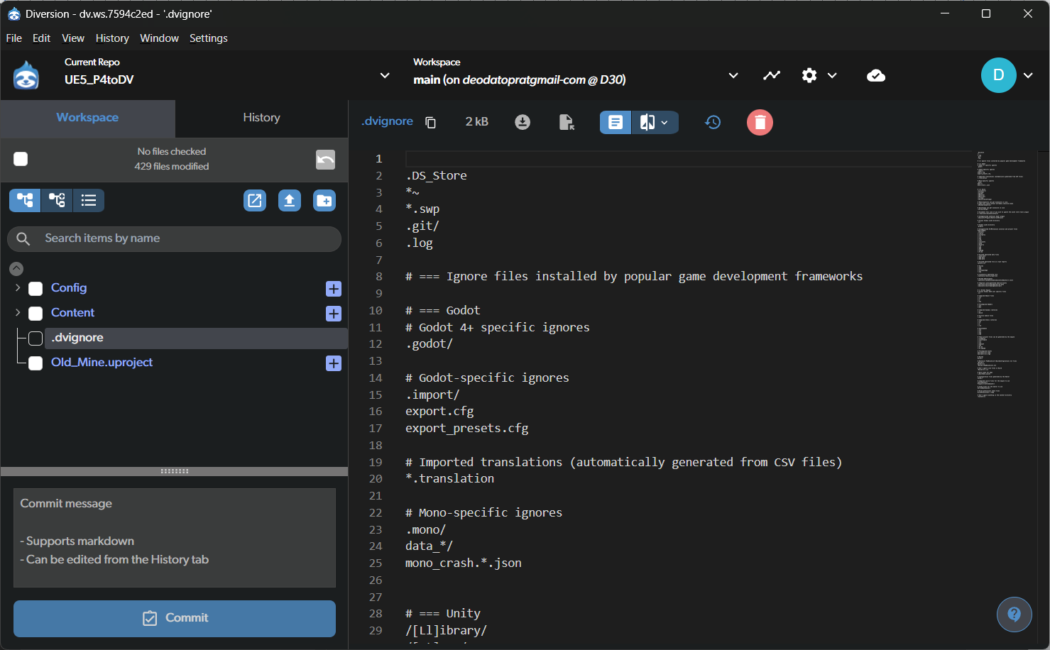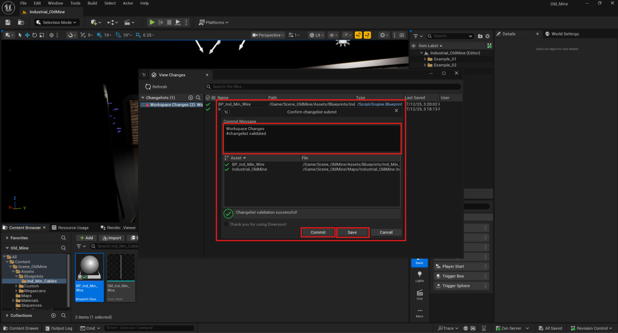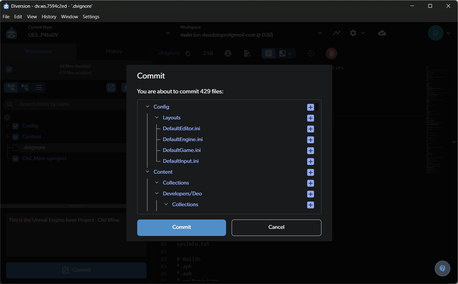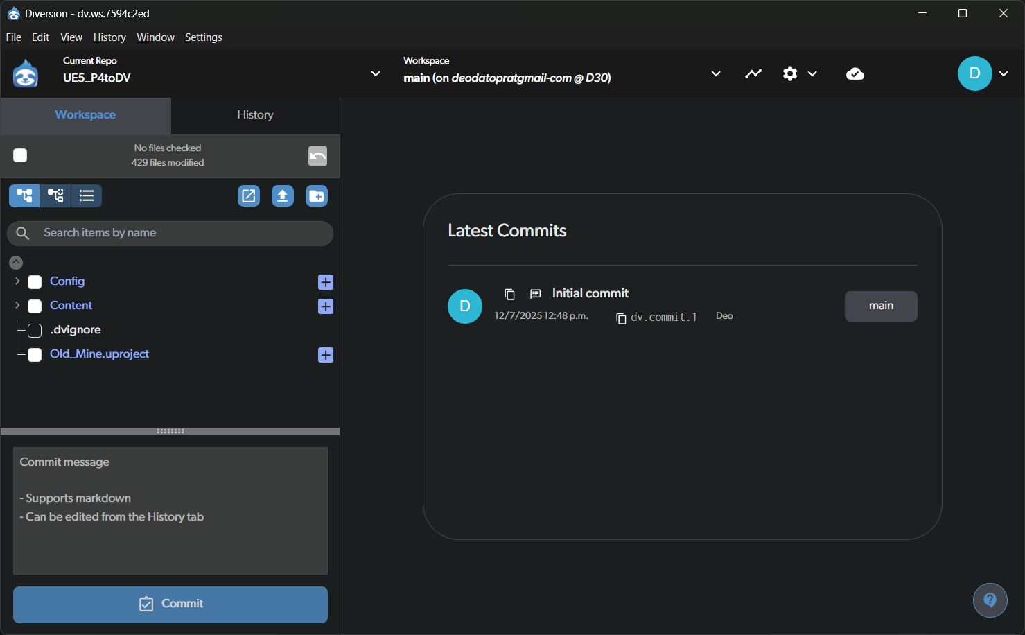 With Diversion, your workspace is continuously synced to the cloud. Committing is the moment you choose to save a snapshot into history. Because of Diversion’s architecture, commit operations are fast, even for large UE projects. As of 5.6, Diversion includes a dedicated Commit button for faster commits from the UI.