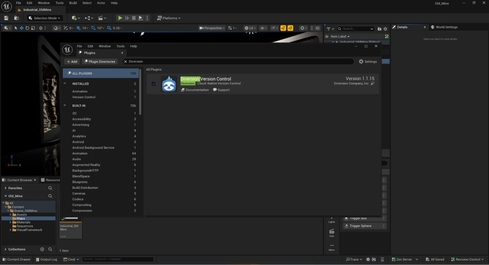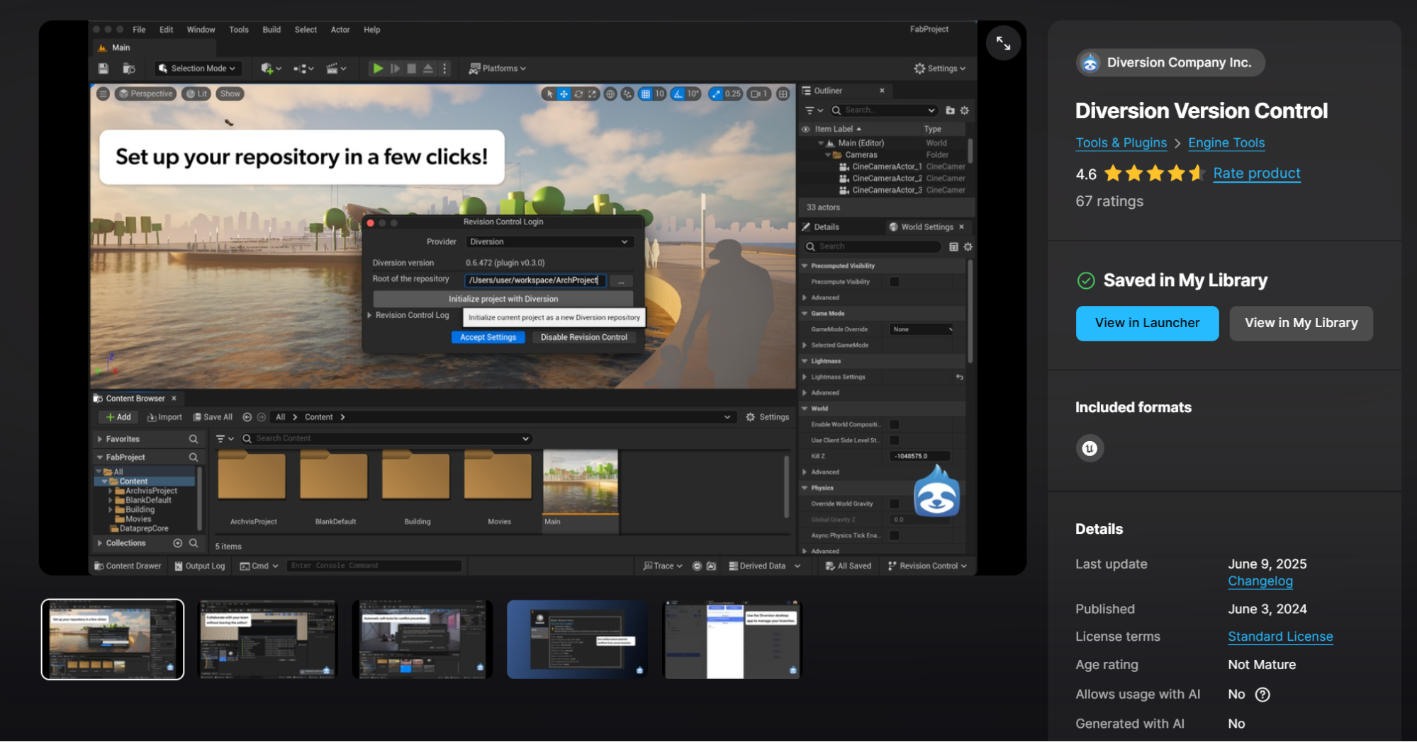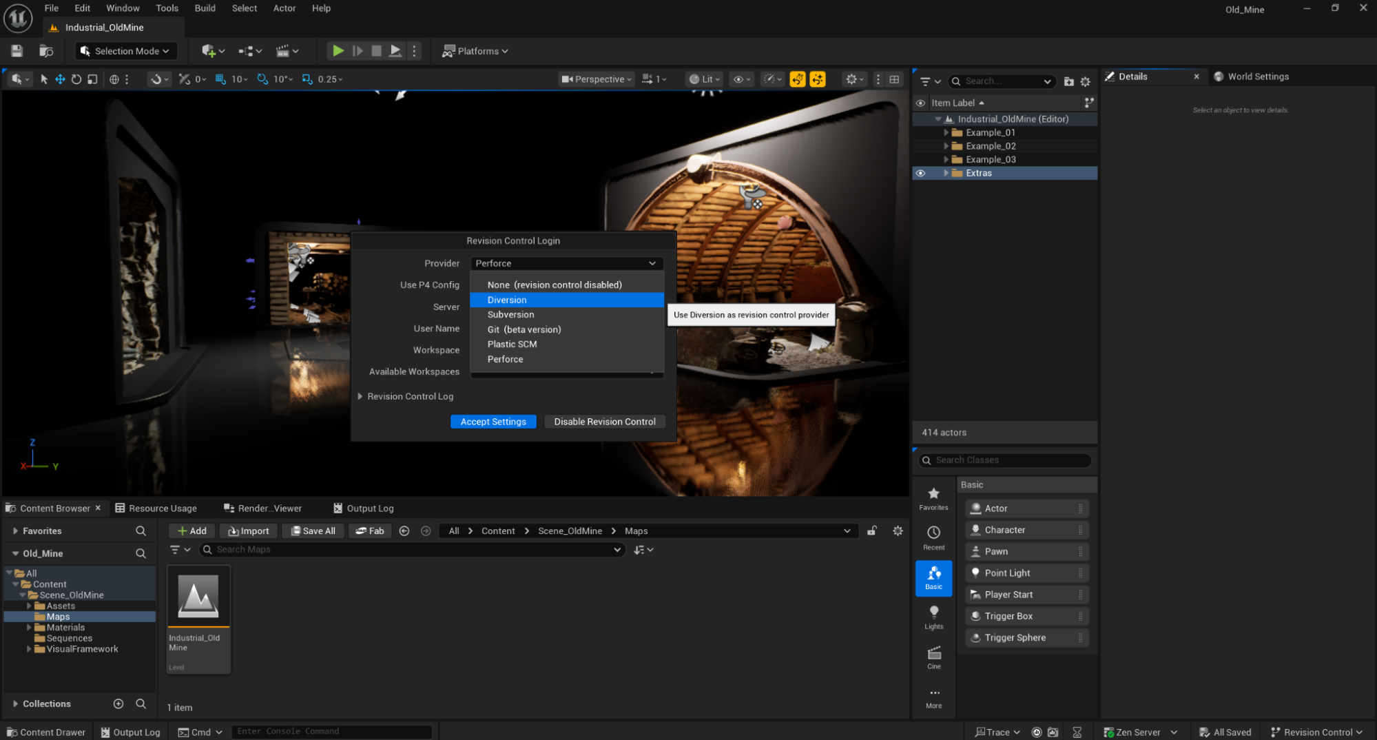 By selecting Diversion as your version control provider, Unreal Engine automatically detects the configuration and establishes the connection without requiring any manual setup.