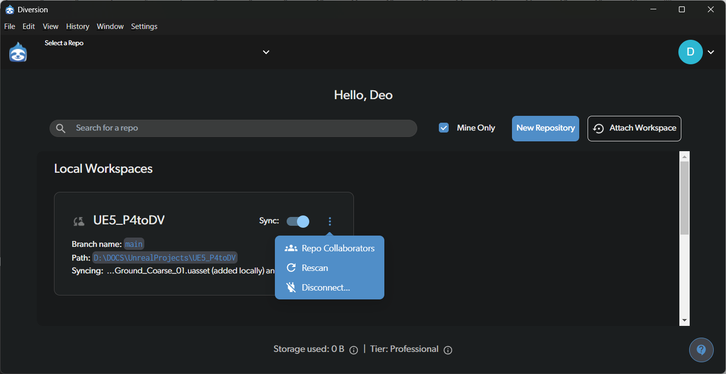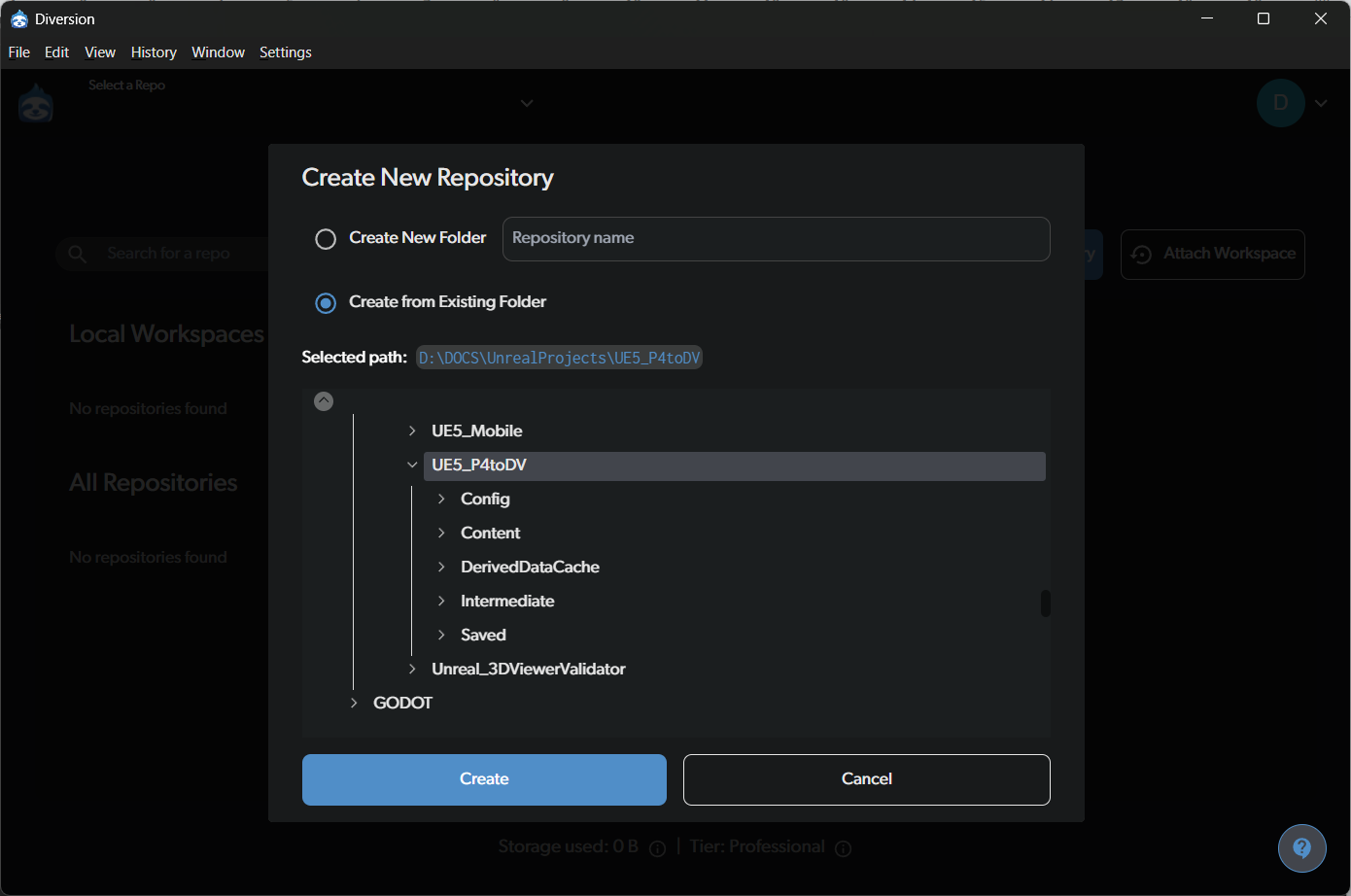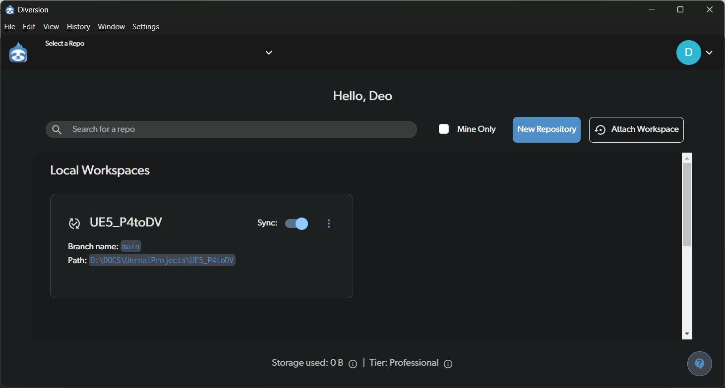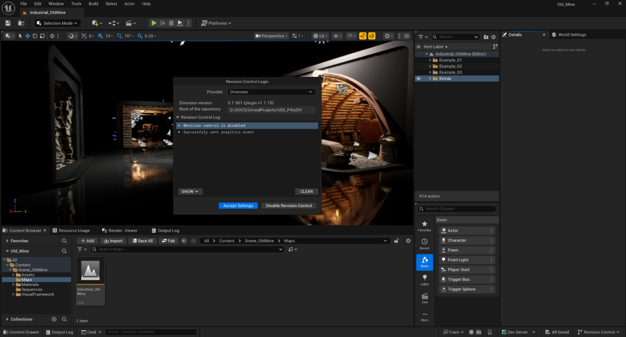 By selecting Diversion as your version control provider, Unreal Engine automatically detects the configuration and establishes the connection without requiring any manual setup.